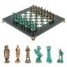 Шахматы "Рыцари" фигуры бронза / патина 28х28 см из змеевика и мрамора