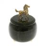 Шкатулка круглая "Лошадка" бронза змеевик 8х8х8,5 см