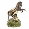 Статуэтка в подарок "Конь на дыбах с подковой на удачу" из бронзы и камня